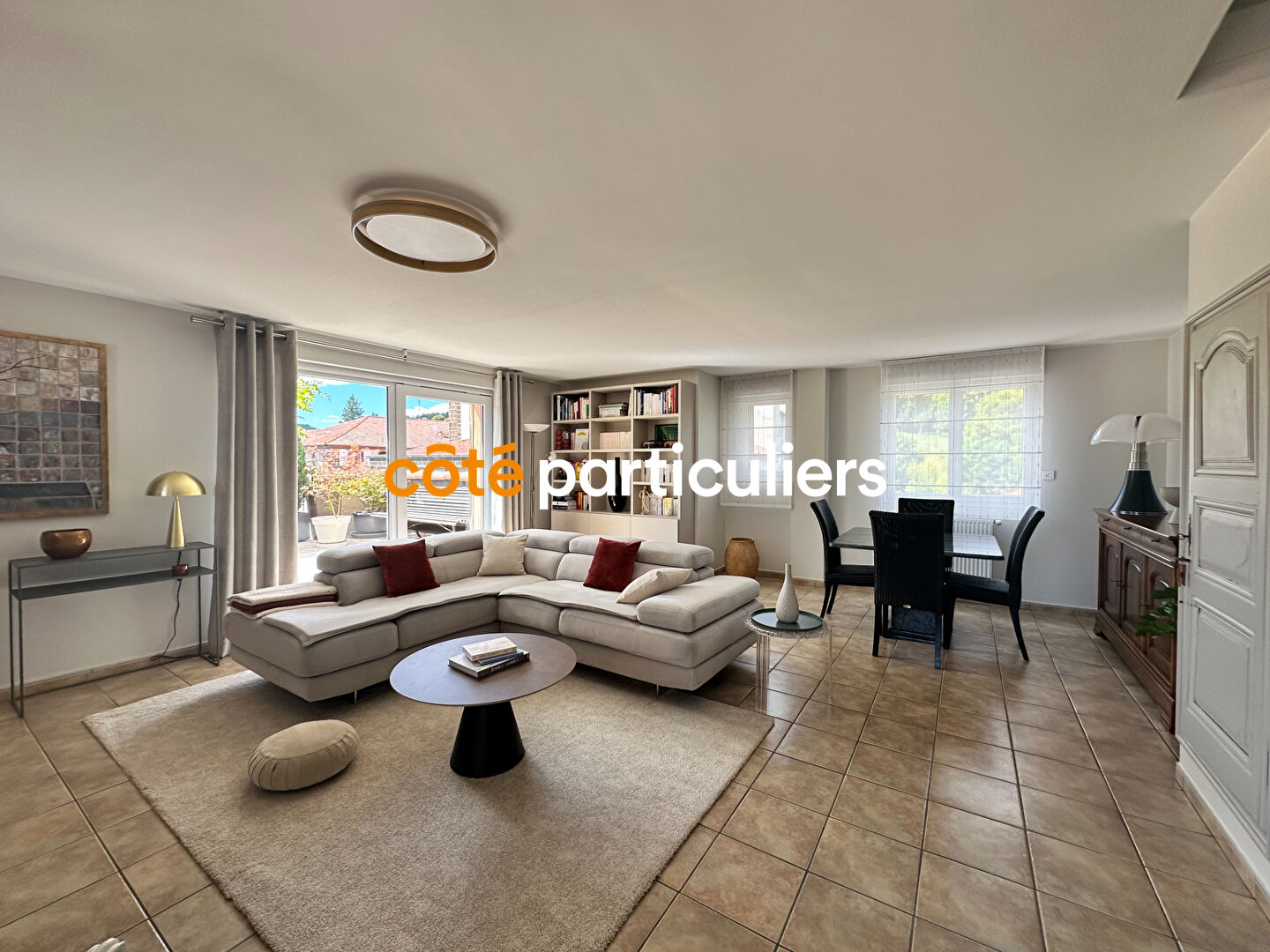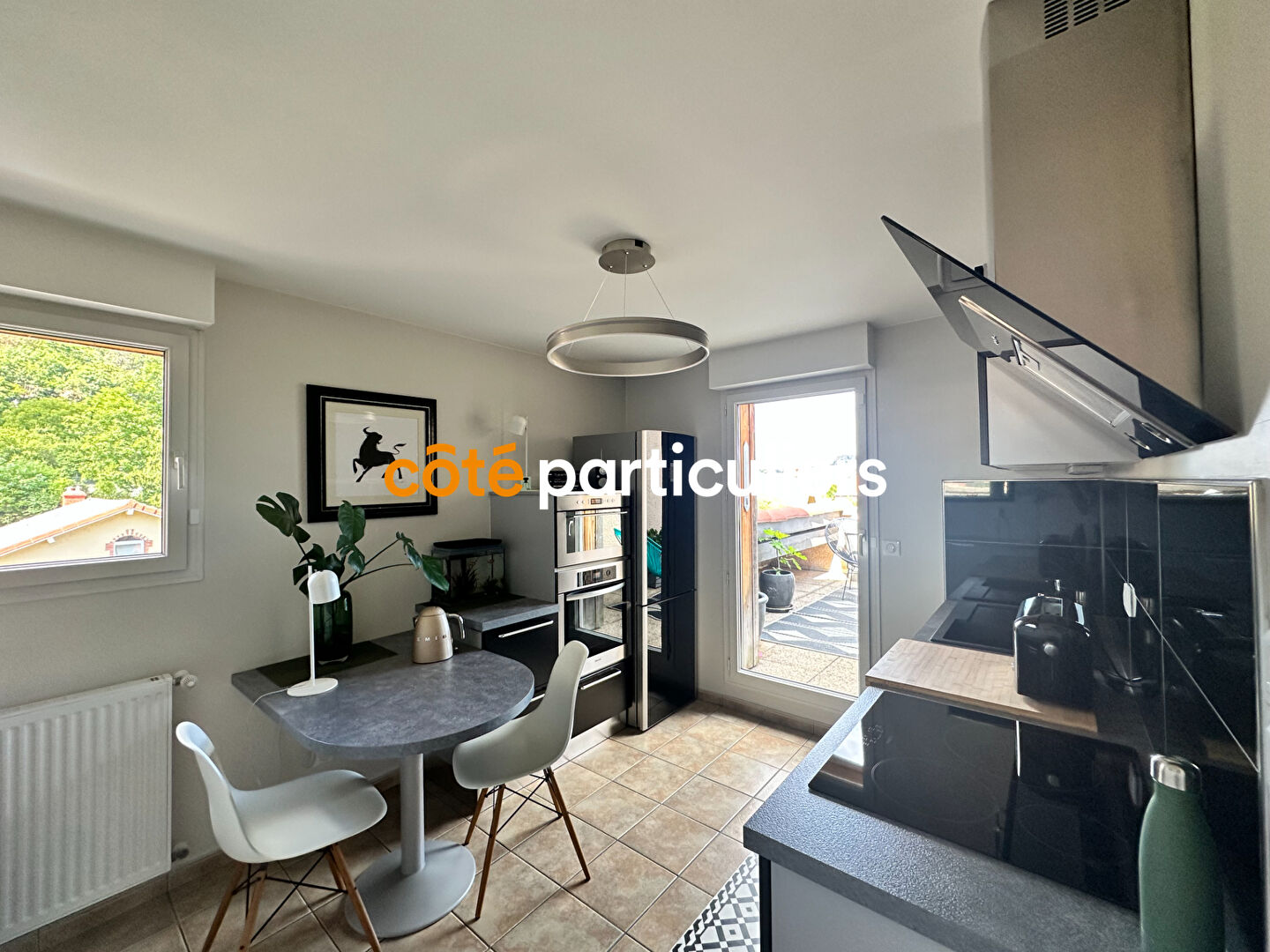 Votre agence Côté Particuliers Le Puy-en-Velay, vous propose : Ce bel appartement de type T4 en duplex avec terrasses et garage, situé aux quatrième et cinquième étages d'une petite copropriété avec ascenseur. Il se compose d'un hall d'entrée donnant sur le séjour avec accès à un premier balcon exposition Sud ainsi qu'une véranda, une belle cuisine équipée avec accès à une seconde terrasse de 15 m², un cellier/buanderie et des toilettes séparées. A l'étage, un dégagement desservant deux chambres, un bureau, un dressing et une salle de bains avec toilettes. En annexes : un garage fermé de 18 m² et une cave de 5 m². Chauffage individuel gaz de ville par radiateurs et poêle à granulés. 279 900 Euros Frais d'agence inclus 266 900 Euros Hors honoraires d'agence 13 000 Euros Honoraires d'agence TTC
