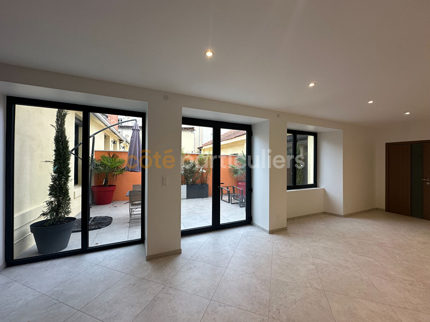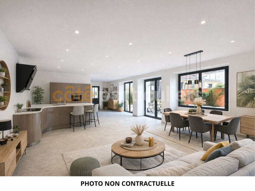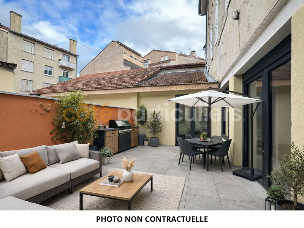 Votre agence Côté Particuliers Le Puy-en-Velay, vous propose : Ce bel appartement T3 entièrement rénové de 105 m² situé en centre-ville du Puy-en-Velay avec garage et entrée indépendante. Il se compose d'un hall d'entrée avec placard donnant sur un vaste séjour lumineux avec cuisine entièrement équipée et aménagée avec accès à une belle terrasse de 24 m², un cellier, une suite parentale avec une grande chambre de 15 m² donnant sur la terrasse, une salle d'eau et un dressing, une seconde chambre de 13 m², une salle d'eau et des toilettes séparées. En annexe : un garage non attenant Chauffage individuel électrique par plancher chauffant Menuiseries aluminium 269 900 Euros Frais d'agence inclus 256 000 Euros Hors honoraires d'agence 13 900 Euros Honoraires d'agence TTC